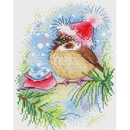 Kit contains: Aida canvas (count 14), mouline threads (21 colours), needle and instructions in 4 languages, including English.