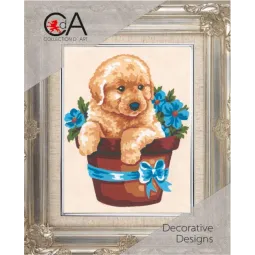 Gobelenų rinkinys su atspausdintu paveikslu 14x18 Šuniukas gėlių vazone CDA3140K