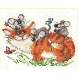 | В комплект входят: белая аида (размер 14), нитки (15 цветов), игла для вышивания и инструкция на английском языке. Размеры: 15x11 см |