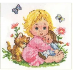 | В набор входит: белая канва (14 каунт), нитки (17 цветов), игла для вышивания и инструкция на английском языке. Размеры: 18x16 см |